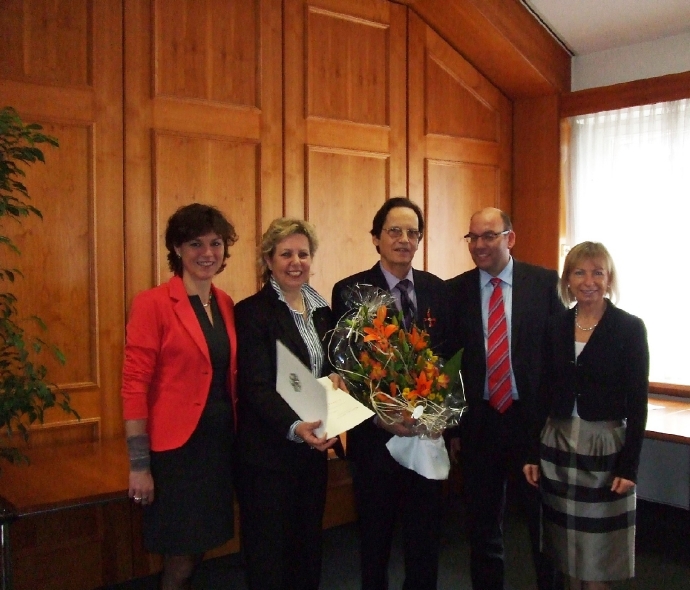 Feierstunde zur Übergabe des Bundesverdienstkreuzes an Dr. Appel am 13.04.2012 im Kreishaus Kassel(von links nach rechts): Stadträtin Anne Janz (Kassel), Vizelandrätin Susanne Selbert (Landkreis Kassel), GTS-Verbands-Vorsitzender Dr. Stefan Appel (Baunatal), Bürgermeister Manfred Schaub (Baunatal), Prof. Dr. Gabriele Weigand (Karlsruhe)